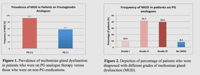 Every time we blink, the meibomian glands secrete their oil. If that oil is too thick, it's difficult for the eyelids to spread it evenly over the surface of the eye --more like toothpaste than olive oil. It may even get so thick that the oil blocks and backs up in the gland.  This will slowly but surely damage the gland permanently. If the meibomian glands atrophy or die off, the body is not able to repair the tissue and the gland becomes permanently nonfunctional.  The result is irreversible and often severe dry eye. 2015 study showed a shocking 91.7% of patients treated with prostaglandin analogue drops for glaucoma had meibomian gland disease, versus only 57.7% of patients being treated for glaucoma on a different category of medication.